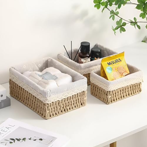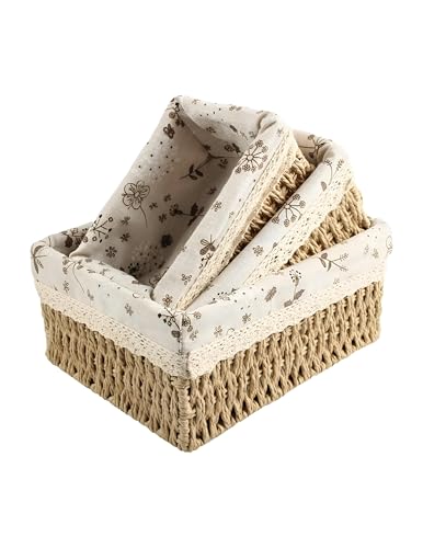 Generic - سلة تخزين - مجموعة من 3 سلال منسوجة من البيج للتنظيم المنزلي ، مثالية للألعاب ، أساسيات الحمام ، أو غرف الأطفال ، متينة وصديقة للبيئة