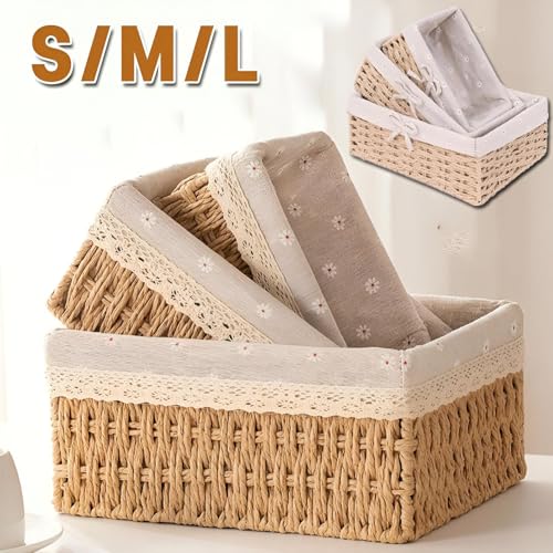 - بفضل بنائها المنسوج يدويا الخالي من النتوءات ، فإن هذه السلال ليست جميلة فحسب ، بل مريحة أيضا في الاستخدام. يضيف تصميم الدانتيل للبطانة الداخلية لمسة من الأناقة ، مما يجعلها مناسبة للعرض والتخزين. هذا المزيج من الجمال والوظائف يجعل مجموعة PALUDO المكونة من 3 سلال تخزين ضرورية لأي منزل منظم.