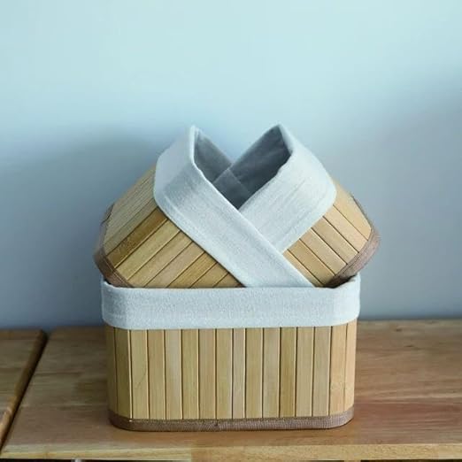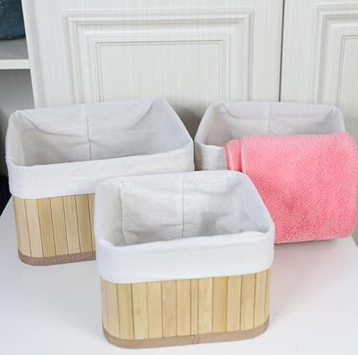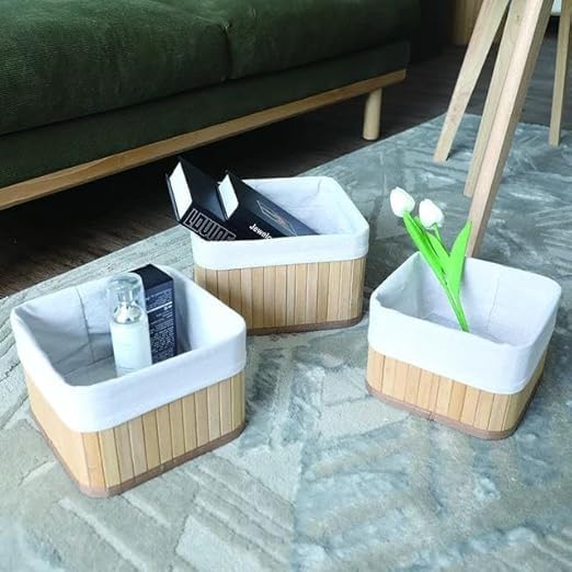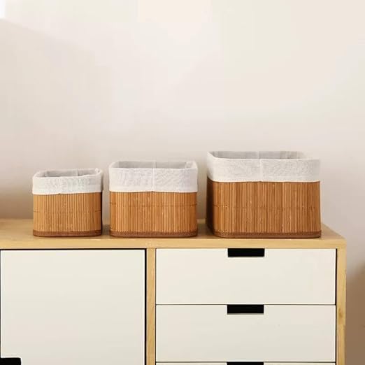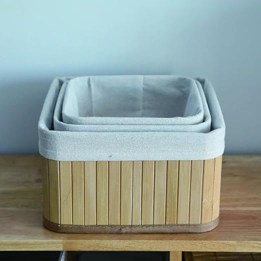 Generic - طقم سلال تخزين مع بطانة قماش قابلة للإزالة – 3 قطع بأحجام مختلفة لتنظيم الحمام والمطبخ وغرفة النوم بشكل أنيق