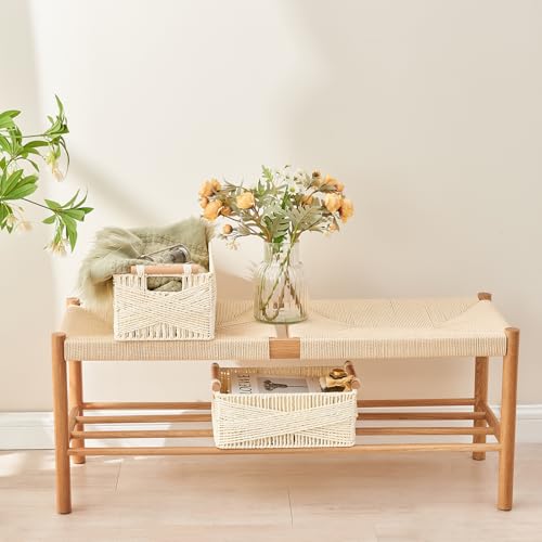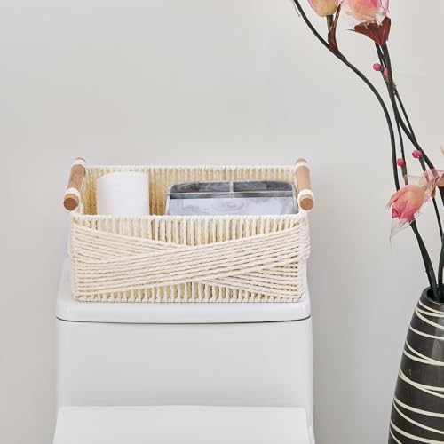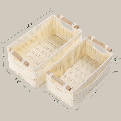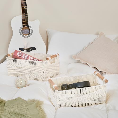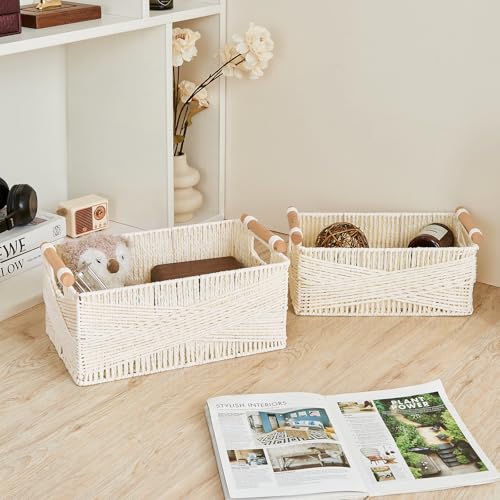 PROLAND - سلة تخزين بمقبض، سلة بيضاوية كبيرة من الخوص للتنظيم، سلال تخزين مزخرفة من الخيزران، منظم بنسيج محبوك لغرفة المعيشة، مجموعة من قطعتين
