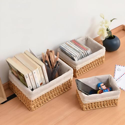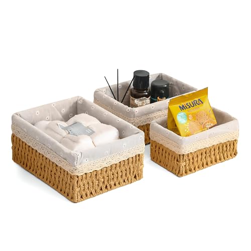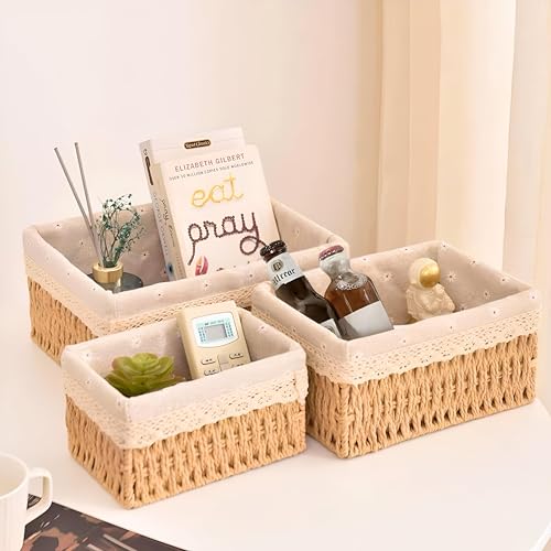 Generic - سلال تخزين ، مجموعة من 3 ، سلة تخزين مضفر منسوجة ، سلة متعددة الوظائف للتخزين ، مصنوعة من الورق المعاد تدويره القابل لإعادة الاستخدام ، ومناسبة لغرفة النوم والمطبخ والحمام