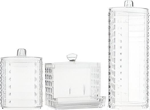 Generic - صناديق تخزين - منظم حمام أكريليك مع أغطية، منظم حمام لتخزين المكياج مع حامل وسادات قطنية، حامل أعواد قطنية، حامل صوف وقطن، مجموعة من 3 قطع