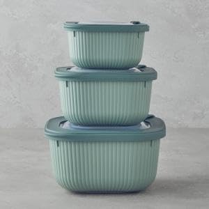 Generic - صندوق تخزين - صندوق تخزين بلاستيكي للثلاجة متعدد الاغراض مكون من 3 قطع مع اغطية مانعة للتسرب وسدادات سيليكون قوية، مثالي للحفاظ على الطعام طازجا والتبريد وتنظيم المطبخ في غسالة الصحون