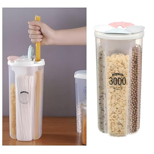 Generic - صندوق تخزين - حاوية بلاستيكية متعددة الاستخدامات مع 4 مساحات تخزين مصممة لتنظيم وتوزيع الحبوب والبقوليات المختلفة بشكل فعال.