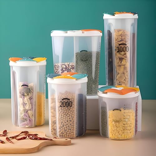 - حاوية تخزين الحبوب 4 في 1 هي ملحق مطبخ متعدد الاستخدامات مصمم خصيصًا لتخزين أنواع الطعام المختلفة بكفاءة، بما في ذلك الحبوب والمعكرونة والوجبات الخفيفة. بسعة كبيرة تصل إلى 2.8 لتر، فهي تجمع احتياجات تخزين الطعام الخاصة بك في وحدة واحدة منظمة مع ضمان سهولة الوصول إلى كل شيء للاستخدام اليومي.