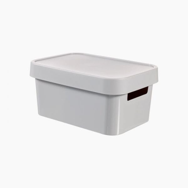 Generic - صندوق تخزين بغطاء، حاوية بلاستيكية مع مقابض، رمادي فاتح، سعة 4.5 لتر