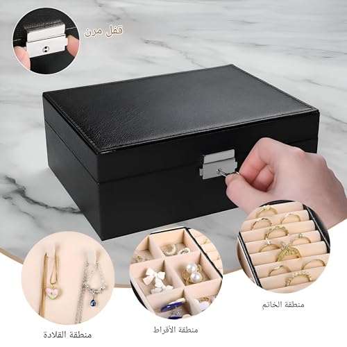 Generic - صندوق تخزين - صندوق مجوهرات للنساء مع صينية قابلة للإزالة، مثالي للقلائد والاقراط والخواتم والاساور وعرض الجلد الصناعي