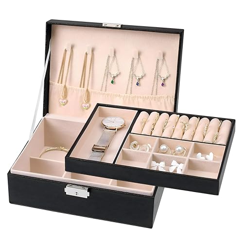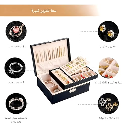 - تخزين أنيق: من يحتاج إلى التنظيم عندما يمكنك الحصول على الأناقة؟ صندوق المجوهرات المصنوع من الجلد الصناعي المكون من طبقتين هو الطريقة المثالية لتخزين القلائد والأقراط والخواتم والأساور في حالة من الفوضى المنظمة. إنه ليس مجرد صندوق مجوهرات؛ بل قطعة إبداعية.