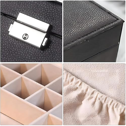 - جاذبية عتيقة: بفضل لونه الأسود الشبيه بالجلد، يتميز منظم المجوهرات هذا بمظهر عتيق سيجعل طاولتك تبدو وكأنها انفجار في متجر غير المرغوب فيه. مثالي لإضافة لمسة من الأناقة.