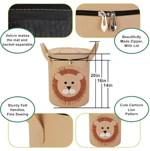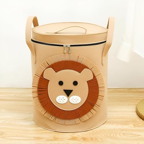 Generic - دلو تخزين - حافظ على منطقة لعب طفلك منظمة دون عناء مع دلو التخزين الساحر هذا الذي يتميز بتصميم كرتوني لطيف، مثالي للألعاب والملابس والغسيل مع إمكانية غسله ونقله! (شكل الاسد)