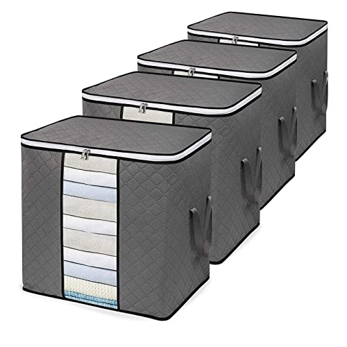 Other - شنطة تخزين ملابس طويلة رمادي - 4 قطع بسعة كبيرة مناسبة لتخزين الملابس والمنظم بالاضافة الى مقبض مقوى والحفة من القماش المقوى للالحفة والبطانيات والمفارش ومزود بسوستة متينة 49 × 28 47 سم