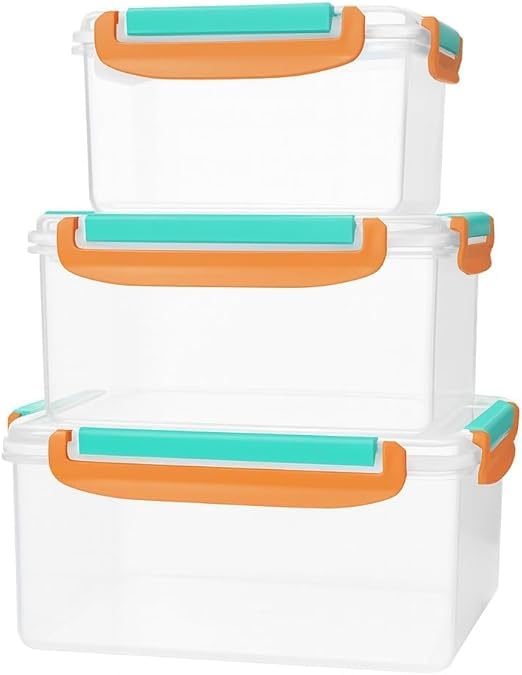 Generic - علب حفظ الطعام بتصميم محكم الغلق من البلاستيك مع أغطية آمنة للاستخدام في الميكروويف وغسالة الصحون، منظم ثلاجة للخضروات والفواكه وتحضير الوجبات بسعة 500 و1000 و1500 ملليلتر، 3 قطع، برتقالي