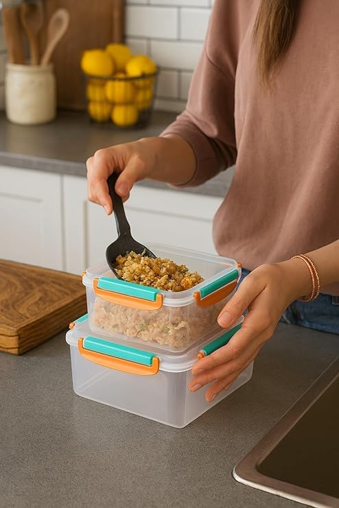 - حافظ على الطعام طازجًا لأطول فترة - تتميز الأغطية المحكمة بإغلاق محكم يمنع التسرب ويحافظ على النكهة، ما يجعل تخزين الطعام اليومي أسهل ويقلل من المخلفات في ثلاجتك