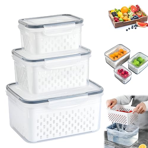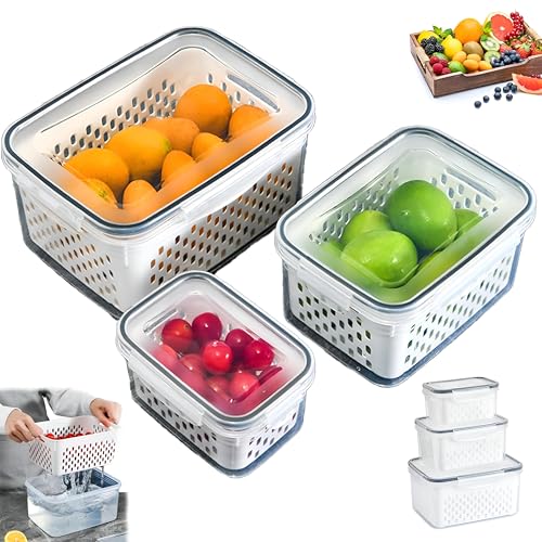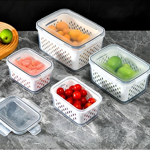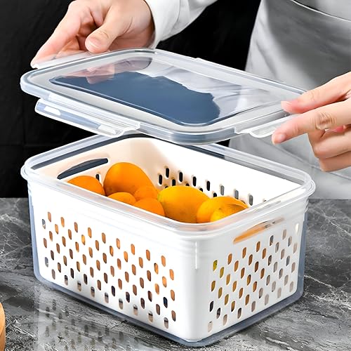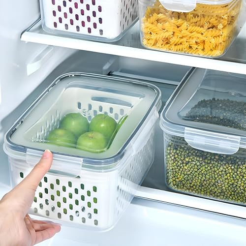 Generic - علب تخزين - علب تخزين مبردة للفواكه والخضروات مع غطاء قابل للإزالة ومصفاة للأطعمة الطازجة لسهولة الوصول إليها في مطبخك