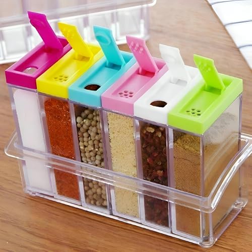 Generic - براميل تخزين - مجموعة من 6 قطع انيقة من البلاستيك، مثالية لتنظيم المطبخ وتخزين التوابل مع اغطية اكريليك امنة