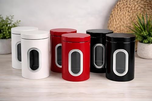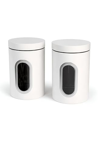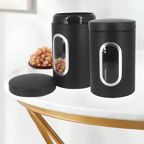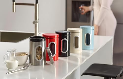 Generic - برطمانات تخزين معدنية مع اغلاق محكم ونافذة شفافة، مصممة لتخزين الدقيق والسكر والحبوب والشاي على المدى الطويل. (لون 2)
