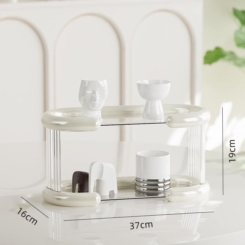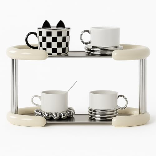 Generic - رف منظم للتخزين لسطح الطاولة بسعة كبيرة للمطبخ والحمام ومستحضرات التجميل وبرطمانات التوابل، حامل متعدد الأغراض بتصميم عصري، وحدة رفوف ثابتة وموفرة للمساحة (من طبقتين)
