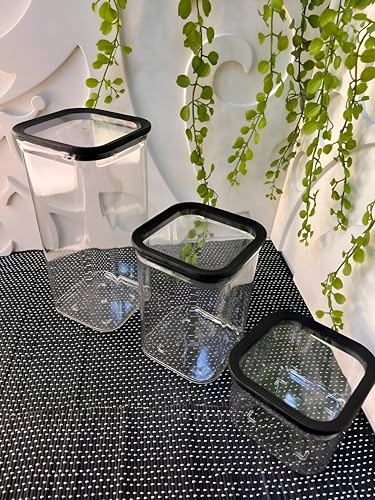 Generic - مجموعة التخزين - محلول تخزين أكريليك للبقوليات والوجبات الخفيفة والتوابل والمعكرونة والدقيق والسوائل - شفافة مع أختام السيليكون لحماية محكم الهواء (أسود, قطعتين)