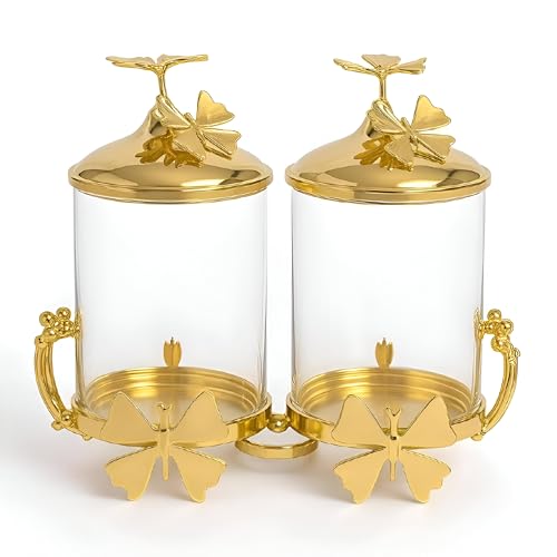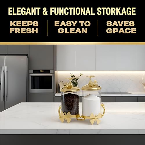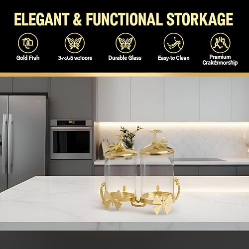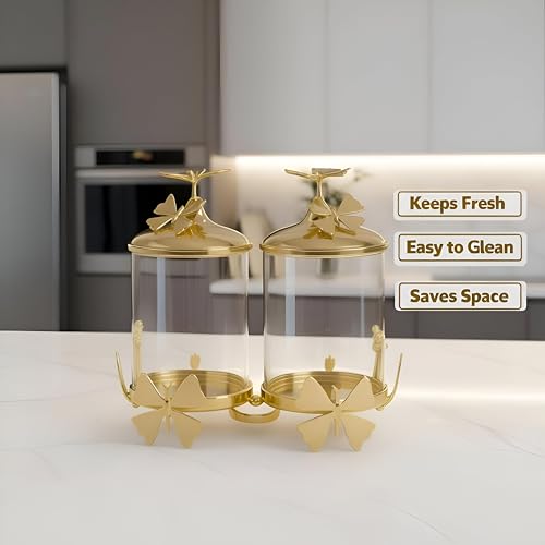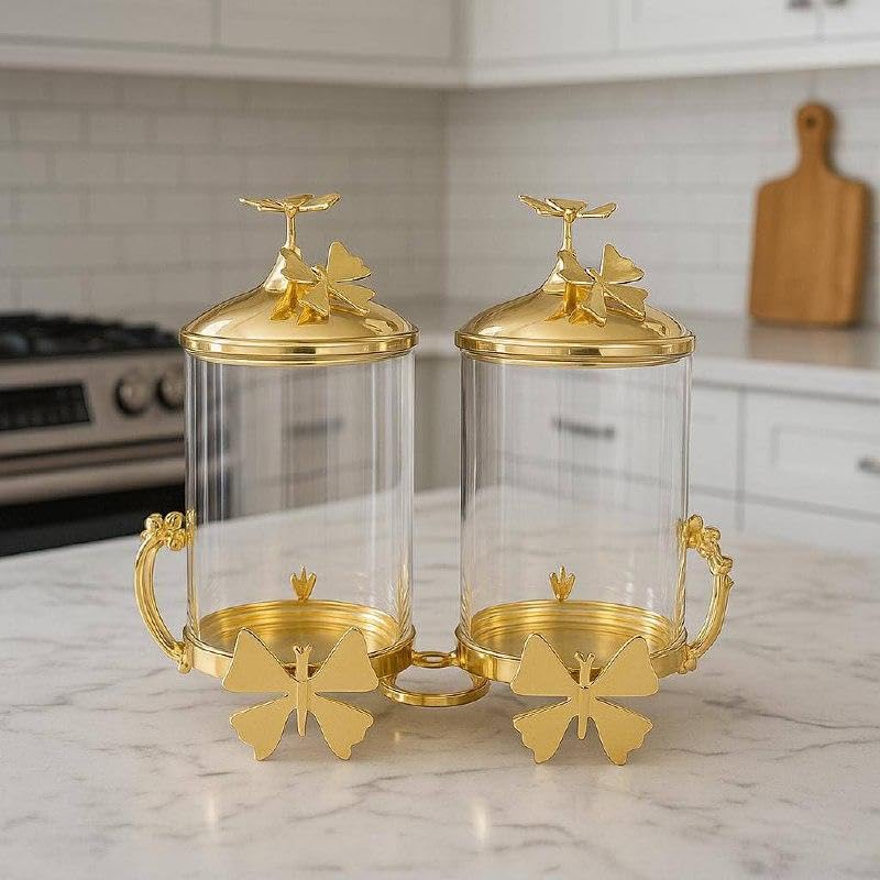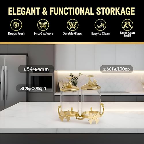 Generic - مجموعة تخزين - حاويات زجاجية فاخرة مع اغطية فراشة ذهبية عالية الجودة، تجمع بين العملية والجمال، مثالية لتخزين المكونات الجافة بشكل أنيق، تأتي كمجموعة من قطعتين