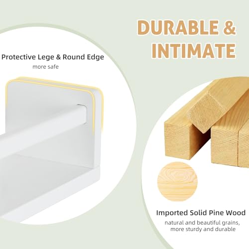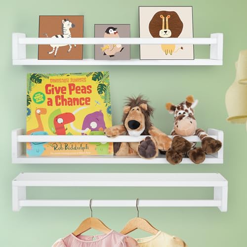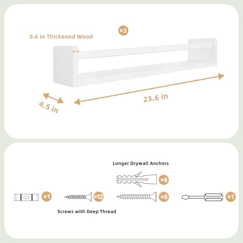 storenization - ارفف كتب عائمة للجدار من ستورينيزاشن، ارفف خشبية طبيعية مقاس 23.6 انش لتخزين الكتب، رف كتب عائم من خشب الصنوبر الصلب لغرفة النوم وغرفة المعيشة، مجموعة من 3 قطع، ابيض