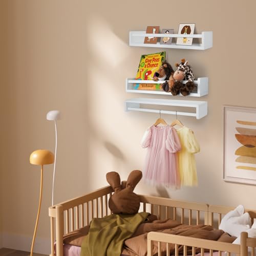 - مجموعة من 3 أرفف عائمة بيضاء - الأرفف العائمة مثبتة على الحائط، مما سيزيد من استخدام الجدران لتوفير مساحة أكبر، مثالية لغرفة النوم وغرفة المعيشة والمطبخ والحمام.