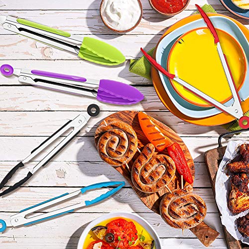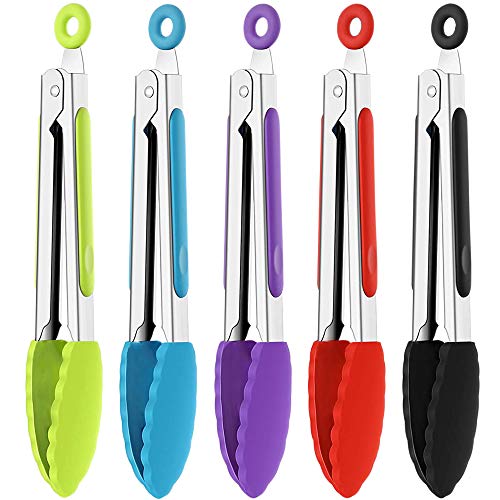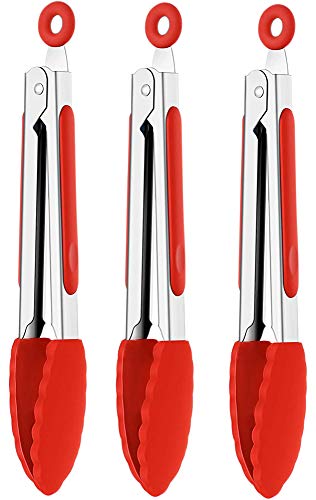 Stores - مساكة طعام للمطبخ من السيليكون (مجموعة من 3 قطع مقاس 20 سم) مصنوعة من الفولاذ المقاوم للصدأ بأطراف من السيليكون لتقديم المشاوي والسلطة والثلجن مناسبة للاستخدام مع الفرن وما إلى ذلك من ستورز