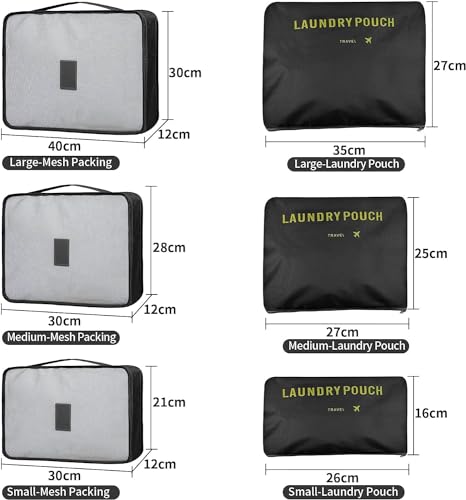 STOREZY - حافظات مكعبة لتنظيم شنط السفر وتوفير مساحة للشنط ومستحضرات التجميل والملابس الداخلية والشرابات والأحذية ومستلزمات التجميل من ستوريزي، عبوة من 6 قطع (لون أسود، مقاس كبير)