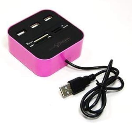 Storite - قارئ بطاقات كومبو الكل في واحد وموزع USB 2.0 بـ 3 منافذ (بينك) من ستورايت، زهري