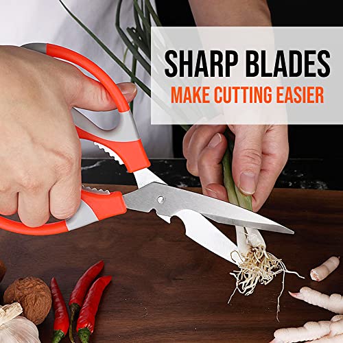 Story@Home - مقص مطبخ متعدد الأغراض لتقطيع اللحوم والخضروات، مقص من فولاذ مقاوم للصدأ للاستخدام في المطبخ بكسارة مكسرات وفتاحة زجاجات من ستوري@هوم، لون رمادي وأحمر