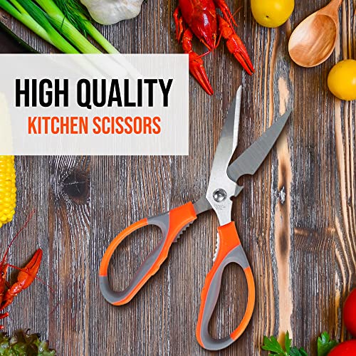 - مثالي لأي مهمة مطبخ - مقص المطبخ هذا للمنزل هو دائمًا أداة أساسية. يأتي بتصميم متعدد الوظائف سيساعدك على إكمال مهامك المنزلية بدءًا من تقطيع الخضروات والمأكولات البحرية واللحوم وصولاً إلى تكسير المكسرات أو فتح الزجاجات.