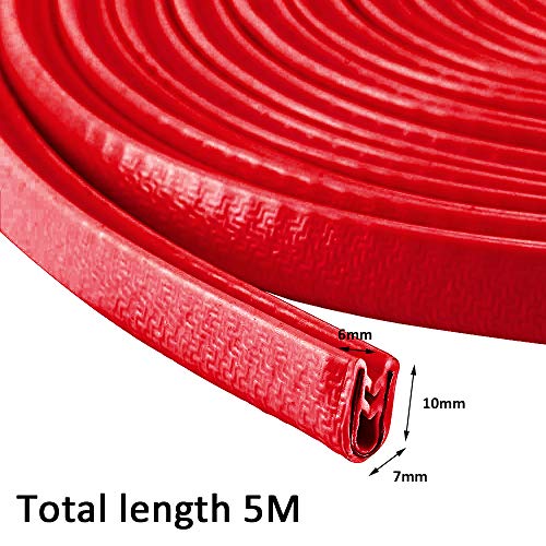 Storystore - واقيات حافة باب السيارة 16 قدم (5 متر)، يتناسب شريط الحافة على شكل حرف U مع حافة باب السيارة المطاطية لحمياته، واقي حافة باب السيارة يناسب معظم السيارات (أحمر)