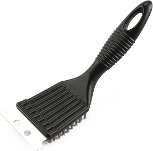 - تصميم 2 في 1 شديد التحمل: فرشاة مزدوجة الأغراض من الستانلس ستيل تنظف المواقد والأفران والشوايات والأسطح المعدنية وتزيل الشحوم والطعام المحترق والبقع الصعبة بسرعة وكفاءة.