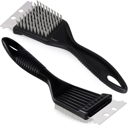 Generic - فرشاة تنظيف بشعيرات سلكية مزدوجة من فولاذ مقاوم للصدأ لإزالة الدهون والأوساخ الصعبة على الأسطح المعدنية والشوايات ولتنظيف البوتوجاز والفرن (قطعتان)