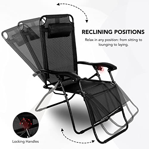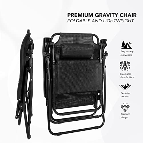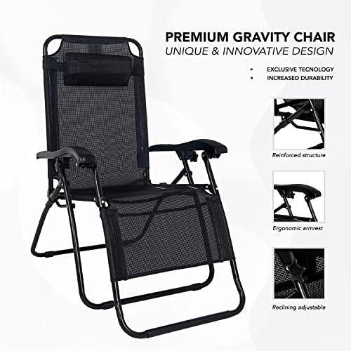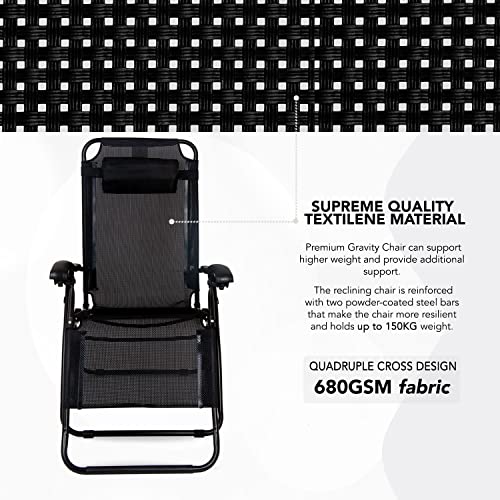 Straame - كرسي فاخر بالجاذبية من سترام استرخاء قابل للطي والامالة تصميم حصري لكرسي الجاذبية مع متانة متزايدة ودعم اضافي للوزن تقنية هوت كت متقاطع رباعي خليط معدني صلب أسود