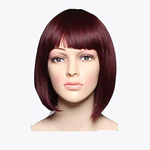 Generic - شعر مستعار حراري قصير مفرود وقابل للغسل، نبيذي اللون