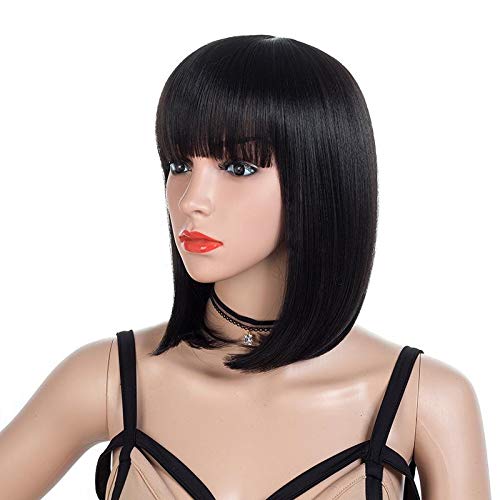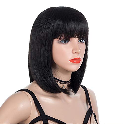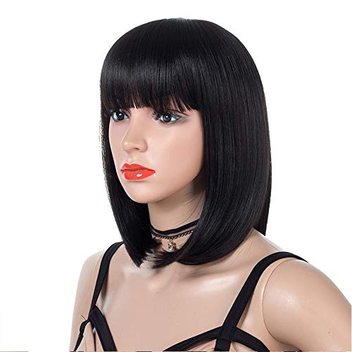 غير معروف - شعر مستعار ناعم مستقيم ومسامي بطول الكتف أسود للنساء