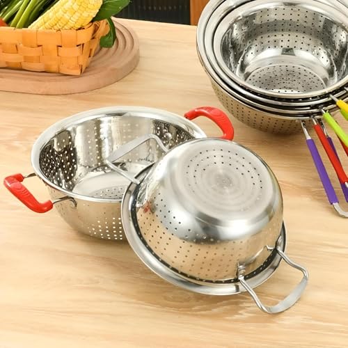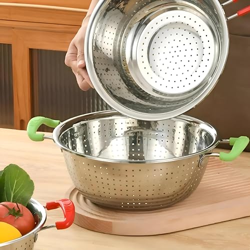 - مزودة بمقابض سيليكون مقاومة للحرارة، تضمن هذه المصفاة قبضة آمنة ومريحة حتى عند التعامل مع الأطعمة الساخنة. تبقى المقابض باردة الملمس، وتوفر ثباتًا غير قابل للانزلاق لمزيد من الأمان، وتضيف لمسة من الأناقة العصرية التي تكمل أي نوع من ديكور المطبخ.