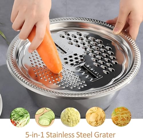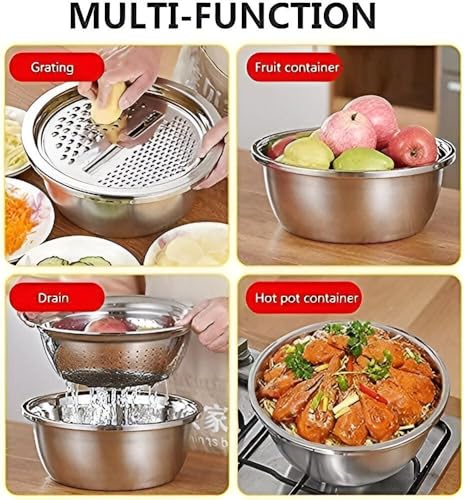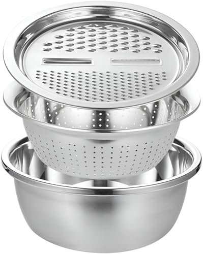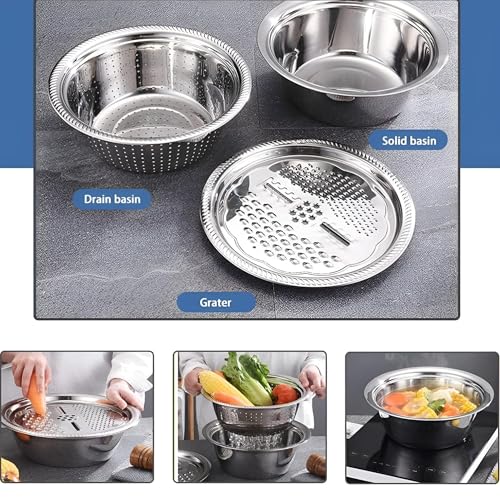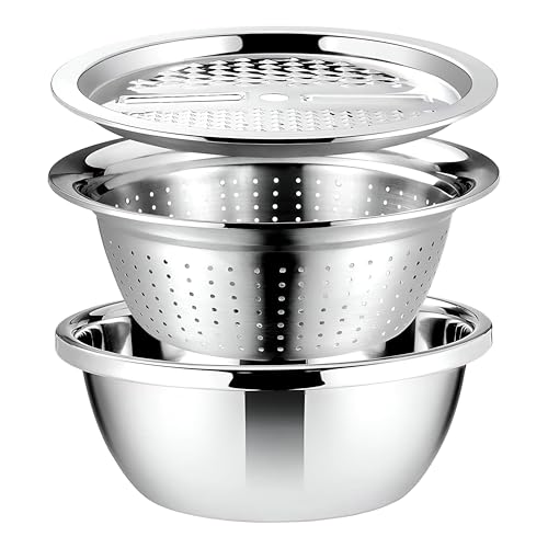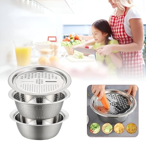 Generic - مجموعة مصفاة - مجموعة متعددة الوظائف من الستانلس ستيل عالي الجودة تجمع بين سلة تصريف ومبشرة تقطيع وتقطيع الفواكه والخضروات، مجموعة مطبخ من 3 قطع 26 سم