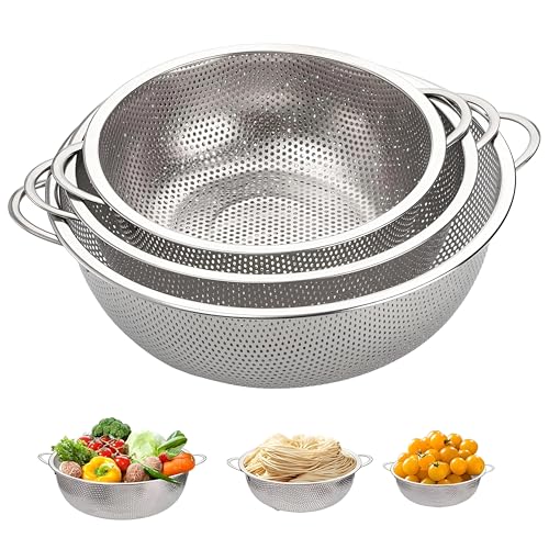 Generic - مصافي للأرز والخضروات والفواكه من فولاذ مقاوم للصدأ مع مقابض مريحة، للاستخدام في المطبخ، مجموعة من 3 مقاسات: 23 سم، 19 سم، 17 سم.