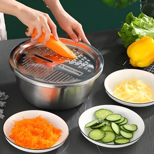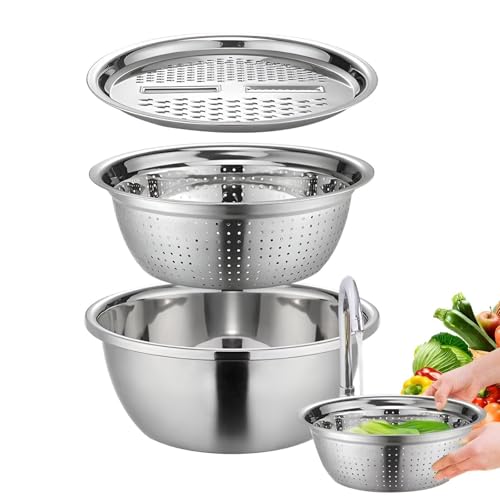 - تتضمن مجموعة الأحواض متعددة الوظائف المصنوعة من الستانلس ستيل ثلاث قطع عملية: مصفاة دقيقة وحوض عميق ومقشرة جوليان، مما يجعلها مساعد مطبخ متعدد الاستخدامات 3 في 1 مثالي لتقطيع الفواكه والخضروات والسلطات بسهولة.