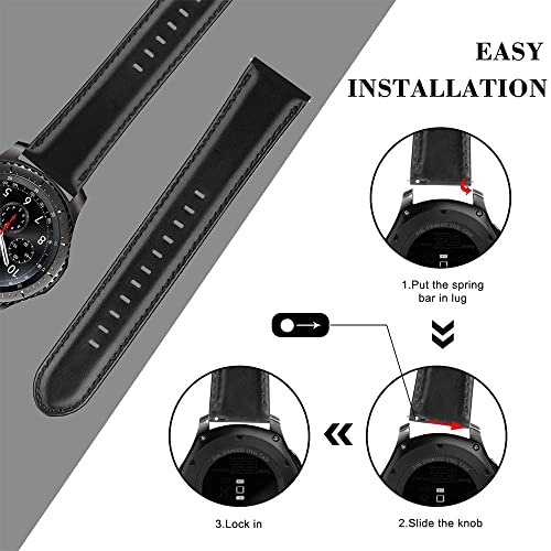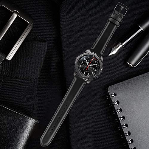 Generic - سوار جلد 20 ملم لساعة سامسونج جالاكسي 4 40 ملم 44 ملم / كلاسيك 42 ملم 46 ملم / جير سبورت/S2 كلاسيك / جالاكسي 42 ملم/ اكتيف 2 40 ملم 44 ملم/ اميزفيت GTR 42 ملم/ GTS 2/بيب U برو/اونور ماجيك 42 ملم، أسود