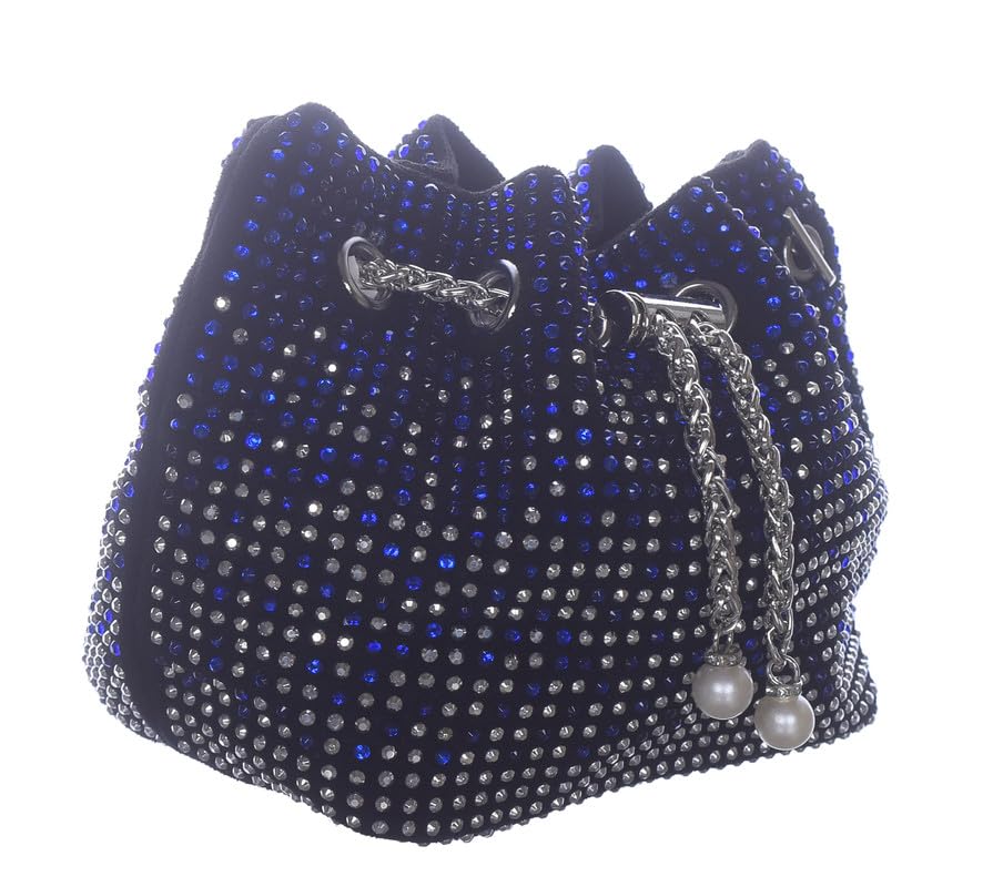 Generic - شنطة كروس شمواه للنساء من ستراس - اسود وازرق - L2115-1