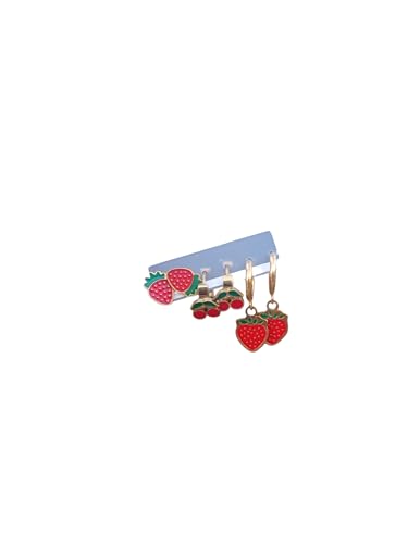 Generic - طقم حلقان بتصميم الفراولة والكريز ستانلس ستيل بيورضدالصدأ، مجموعة من ٦قطع، أحمر وأخضر