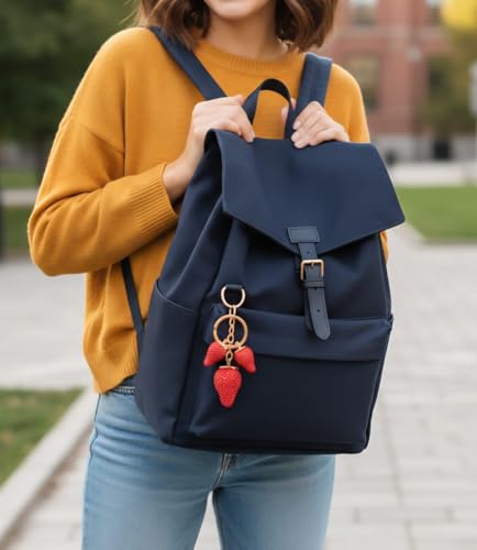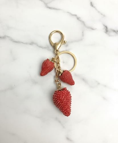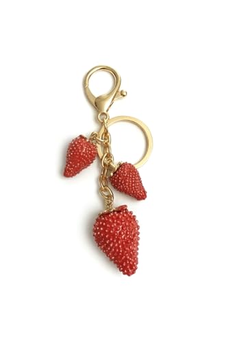 Generic - ميدالية مفاتيح على شكل فراولة، استانلس ستيل، لون أحمر، بحلقة مفاتيح ذهبية