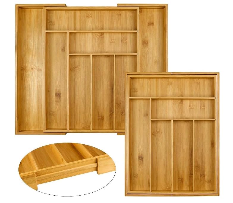 - 【سعة كبيرة】: قم بتنظيم درج مطبخك ووفر مساحة أكبر مع منظم الأدوات الفضية هذا. تحتوي صينية الأدوات على ألواح قابلة للتوسيع على اليسار واليمين لتخزين المزيد من أدوات المائدة وأدوات المطبخ.