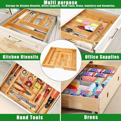 - 【استخدام متعدد الأغراض للراحة】 يمكن استخدام منظم الأدراج لتخزين الأغراض الصغيرة بواسطة مساحات تخزين مثل أدوات المائدة والمجوهرات والأدوات المكتبية والأدوات. يمكن استخدامه في المطبخ وغرفة المعيشة وغرفة النوم وغرفة المرافق وغيرها، وهو مناسب لوضع العديد من الأغراض في مناسبات متعددة. أهم شيء هو توفير الوقت للبحث عن الأغراض.