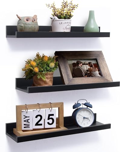 Streema art - ارفف عائمة من الخشب شيشام من ستريما ارت، مجموعة من 3 قطع، ارفف للصور للحمام والمطبخ وغرفة النوم وغرفة المعيشة والمكتب (خشب الجوز، 16 انش)