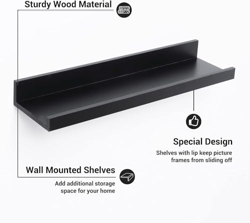 - 【أرفف عائمة】الرف ذو الحافة عملي وجميل. تصميم على شكل حرف U وتصميم حاجز 0.6 انش يمكن أن يمنع الأشياء من الانزلاق.