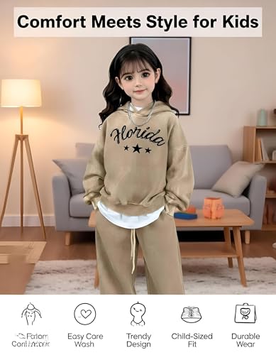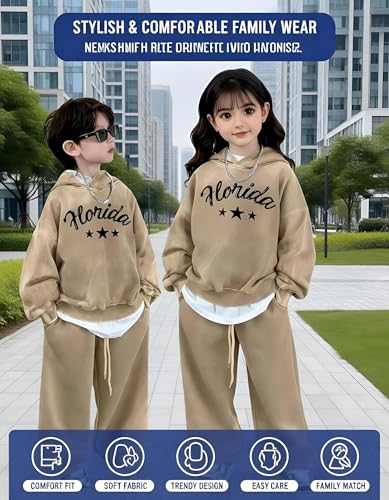 Generic - مجموعة ملابس الشارع - طقم هودي وسروال بلون اخضر زيتوني للاولاد، مظهر ملابس الشارع كاجوال، مزيج من القطن جيد التهوية، خياطة متينة، مقاس مريح للايام وعطلات نهاية الاسبوع