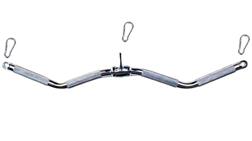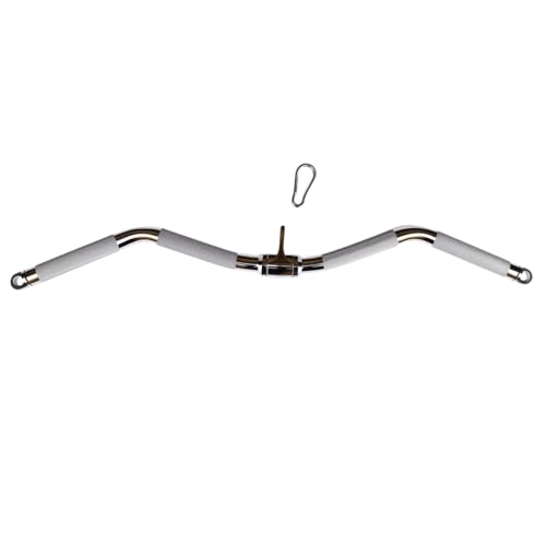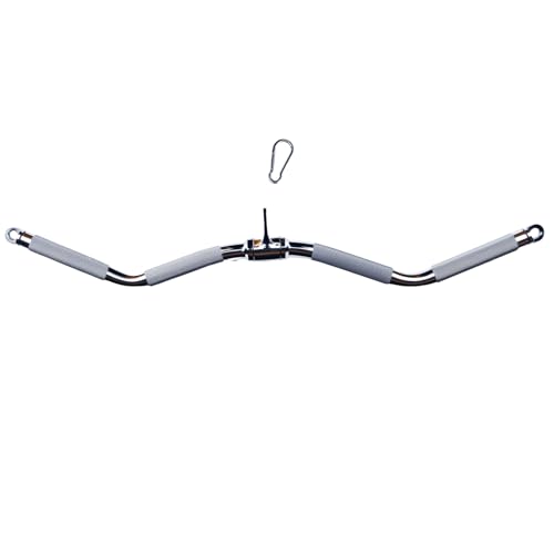 Rivotrance - قضيب سحب لاسفل عريض معزز للقوة، ملحق سحب مجعد - معدات صالة الالعاب الرياضية مع مقابض مطاطية لتدريبات القوة المريحة، ملحق الة كيبل قضيب اللات المثالي (30 انش كروم)